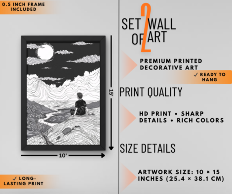 Minimal Black & White Story Art with Colorful Nature Landscape Wall Art Set of 2