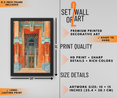 Luxury Travel & Art Deco Architecture Wall Art Set of 2 | Modern Aesthetic Wall Decor