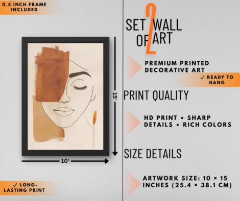 Modern Minimal Face & Abstract Portrait Wall Art Set of 2 | Aesthetic Wall Decor