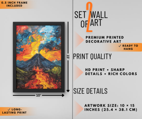 Volcanic Energy & Abstract Color Flow Wall Art Set of 2 | Modern Vibrant Wall Decor