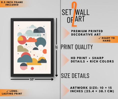 Cute Clouds & Rainbow Abstract Wall Art Set of 2 | Kids Room Aesthetic Wall Decor