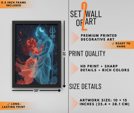 Radha Krishna & Lord Shiva Divine Wall Art Set of 2 | Spiritual Wall Decor for Home & Mandir
