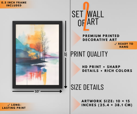 Premium Coastal Village & Sunset Landscape Wall Art Set of 2 | Luxury Scenic Wall Decor
