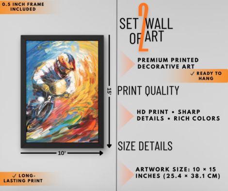 Mystic Forest & Speed Rider Wall Art Set of 2 | Fantasy Meets Action Wall Decor