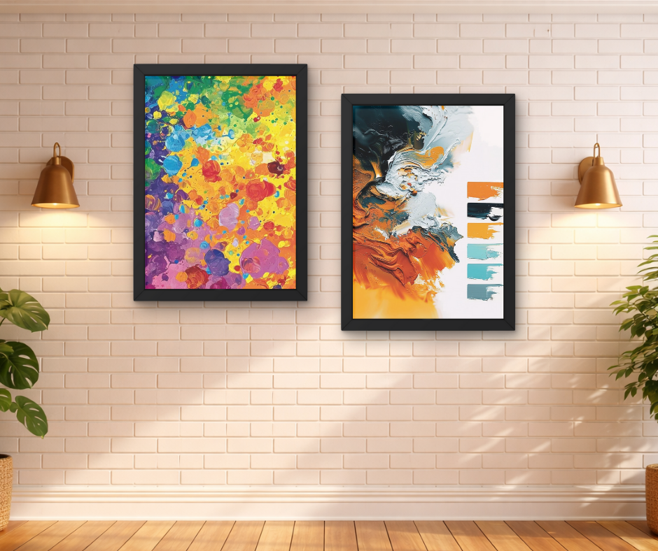 Transform your walls with this premium set of 2 abstract wall art frames, designed to bring color, creativity, and modern style to your space. These artworks feature vibrant abstract designs printed in high-definition quality, ensuring sharp details and long-lasting colors.