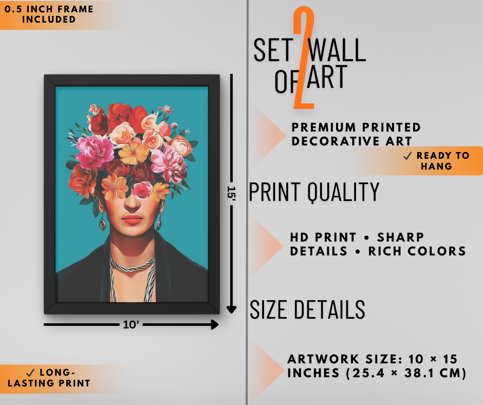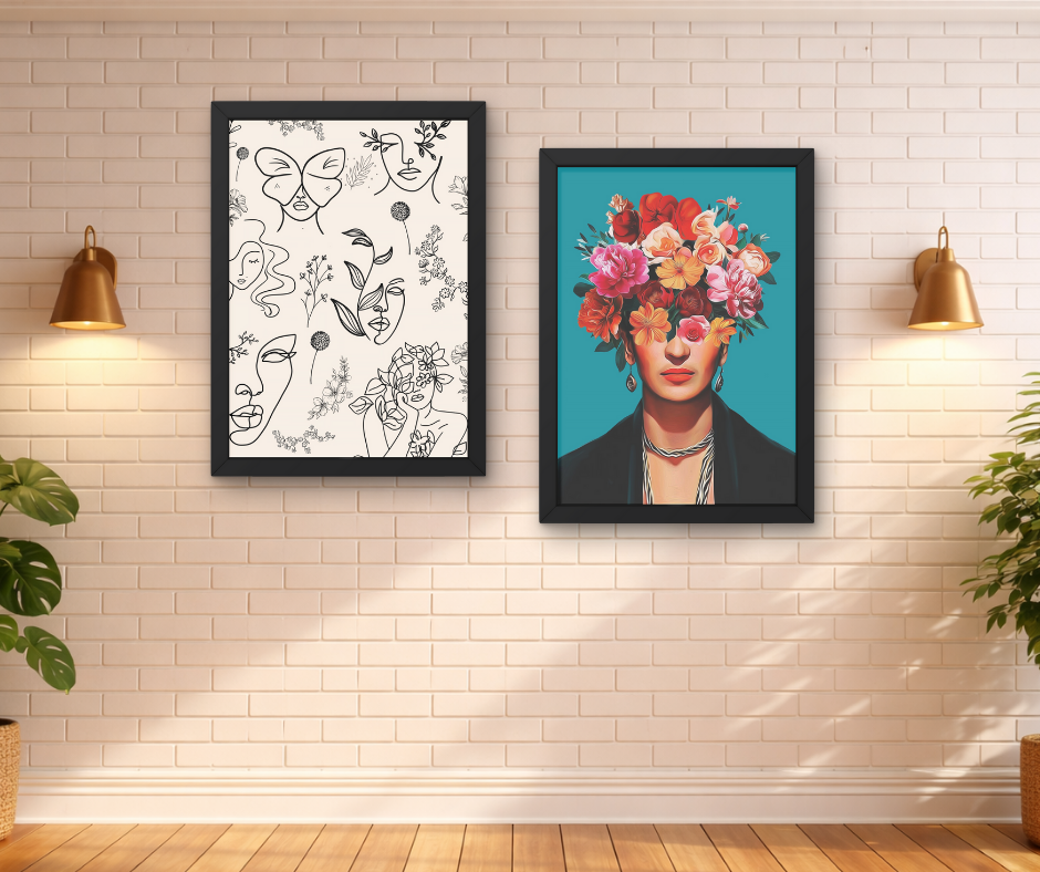 Enhance your walls with this artistic wall art set of 2, featuring modern line art faces and a vibrant floral portrait. Designed for creative and aesthetic interiors, these frames are printed in HD quality with sharp details and rich colors. Comes with a ready-to-hang frame, perfect for stylish home décor.