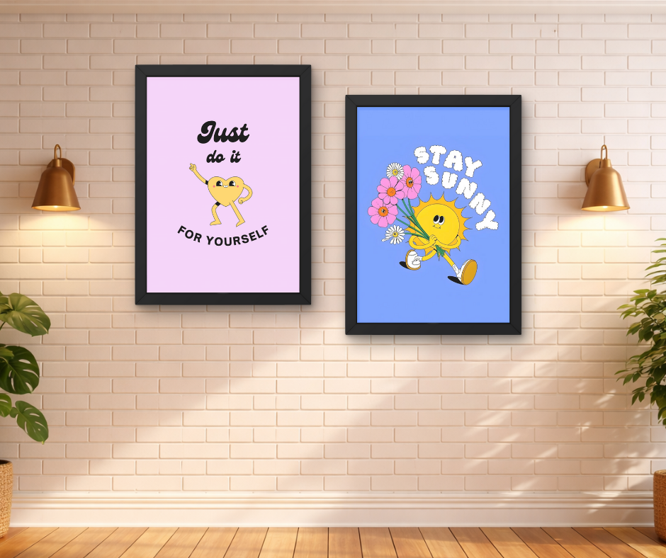 Add positivity and charm to your space with this cute motivational wall art set of 2. Featuring uplifting quotes and playful cartoon designs, these frames are printed in HD quality with vibrant colors. Perfect for bedrooms, study areas, and aesthetic interiors.