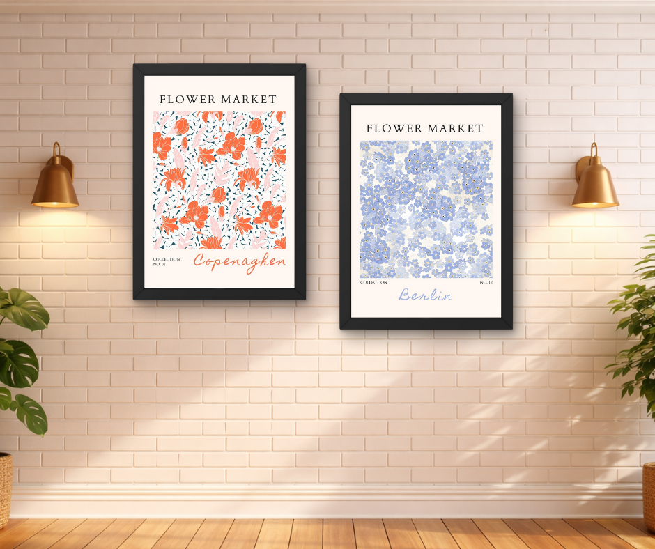 Inspired by minimal Nordic design, these posters feature delicate floral patterns combined with clean typography, creating a modern yet cozy visual appeal.
