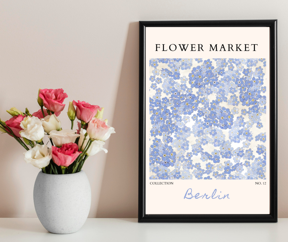 Elegant Scandinavian flower market poster set featuring soft floral patterns for a clean, aesthetic, and modern décor.