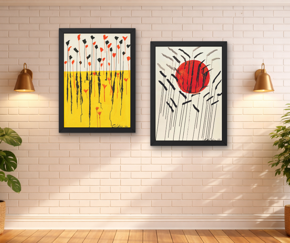 Add a touch of artistic storytelling to your walls with this abstract nature wall art set. Inspired by elements of nature, the artwork combines a vibrant red sun with expressive floral strokes, creating a beautiful blend of emotion and minimal design.