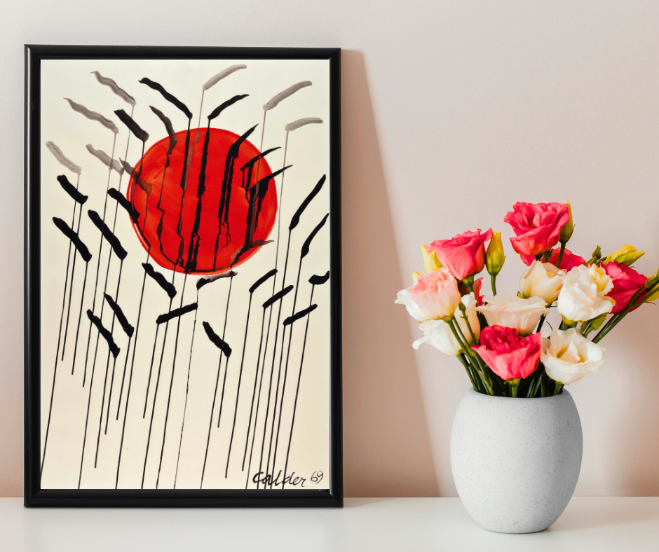 • Red sun & floral field artistic design