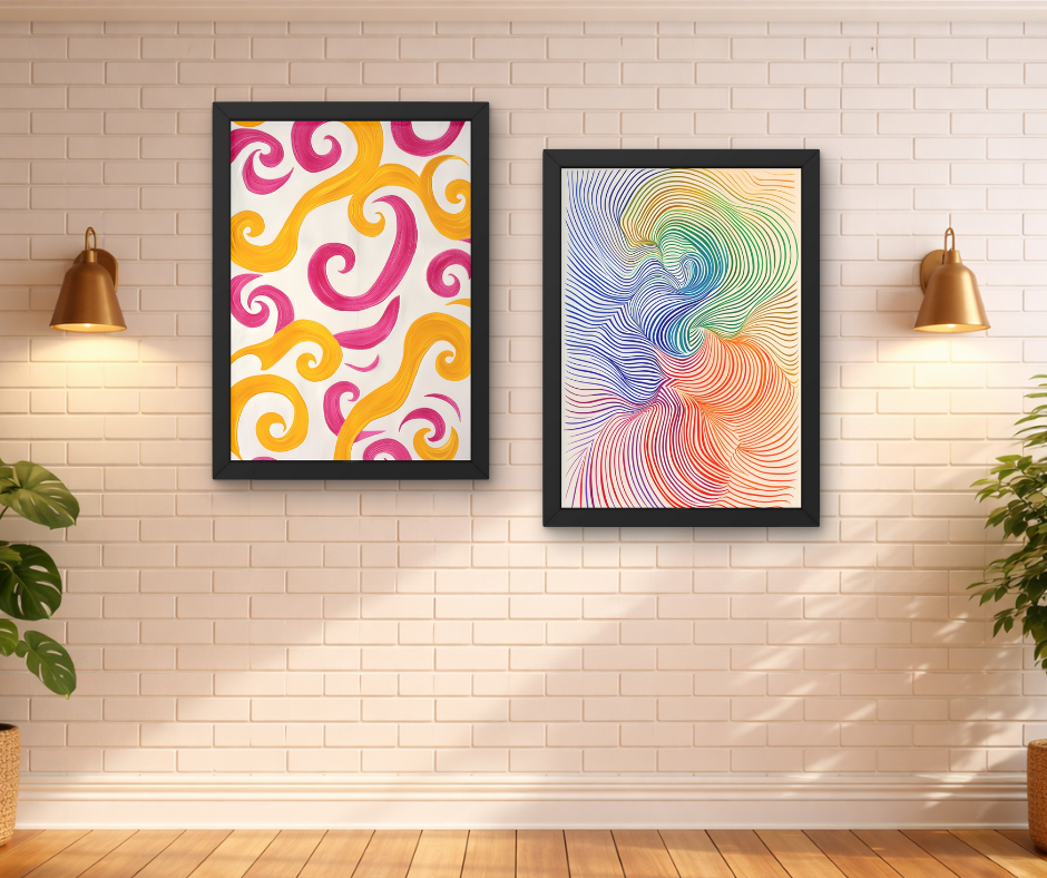 Transform your living space with this modern abstract swirl wall art set, designed to bring creativity and vibrant energy to any interior. The artwork features flowing colorful patterns and modern abstract lines that create a dynamic and eye-catching visual effect.