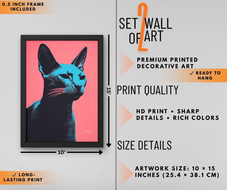 Add a bold and stylish touch to your walls with this modern cat wall art set, designed especially for pet lovers and aesthetic décor enthusiasts.
