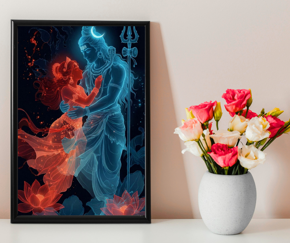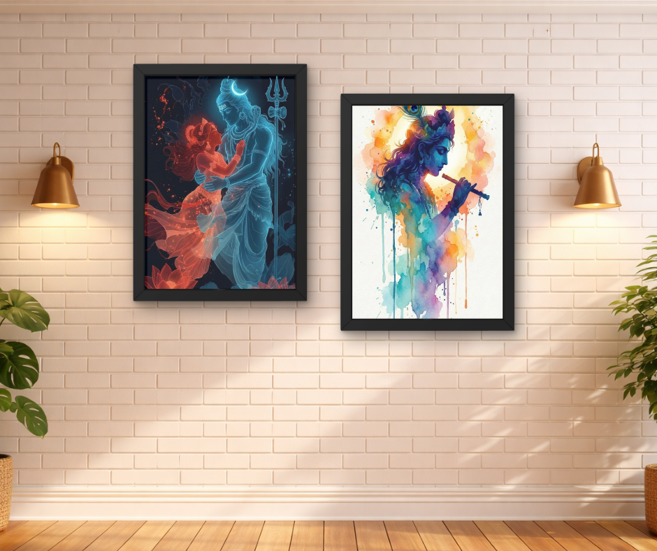 Bring divine energy and positivity into your space with this Radha Krishna & Lord Shiva Wall Art Set.